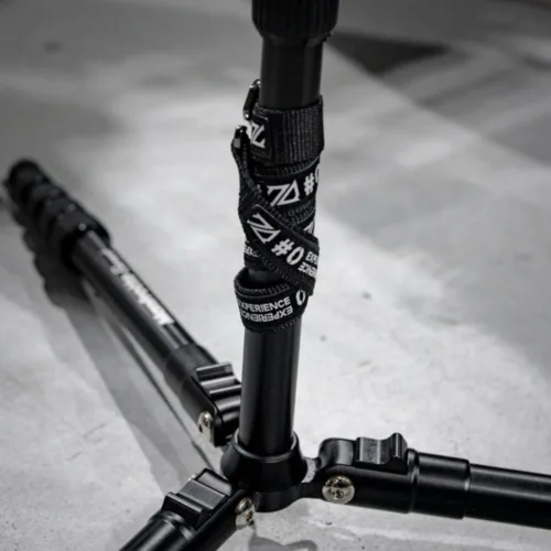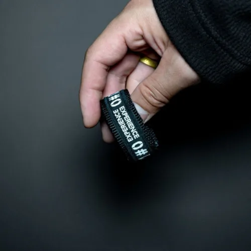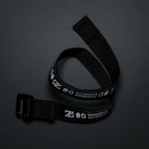 A short strap with the “#0 EXPERIENCE SERIES” logo on the black gear strap of GRAYSCALE STUDIO.