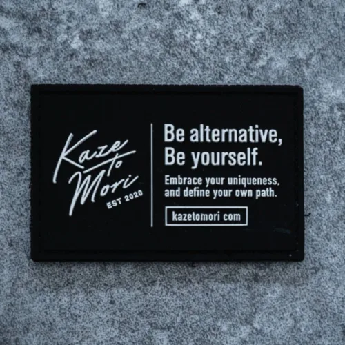 PVC label with KAZE_TO_MORI logo and slogan included in the completed design. With Velcro on one side, you can stick it in various places and enjoy customization.