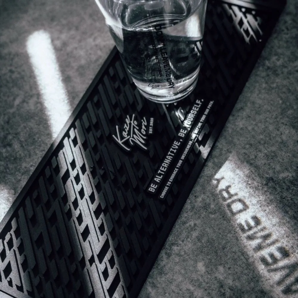 Rubber bar mat that can be used as a base for placing glasses and making drinks