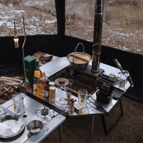 The opening in the middle can be used to place a stove/charcoal stove/heater, which can be expanded freely.