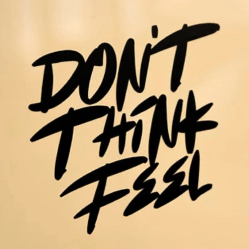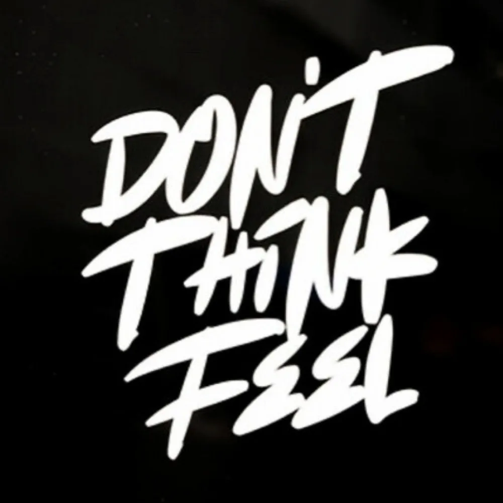 Square cut sticker with “Don’t Think Feel” logo